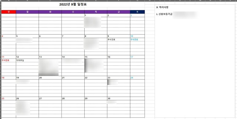일정표는 데드라인 체크나, 고정지출 체크 등을 메모해서 보고있어요