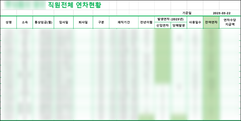 개인별로 언제 연차/반차를 사용했는지 나오고,